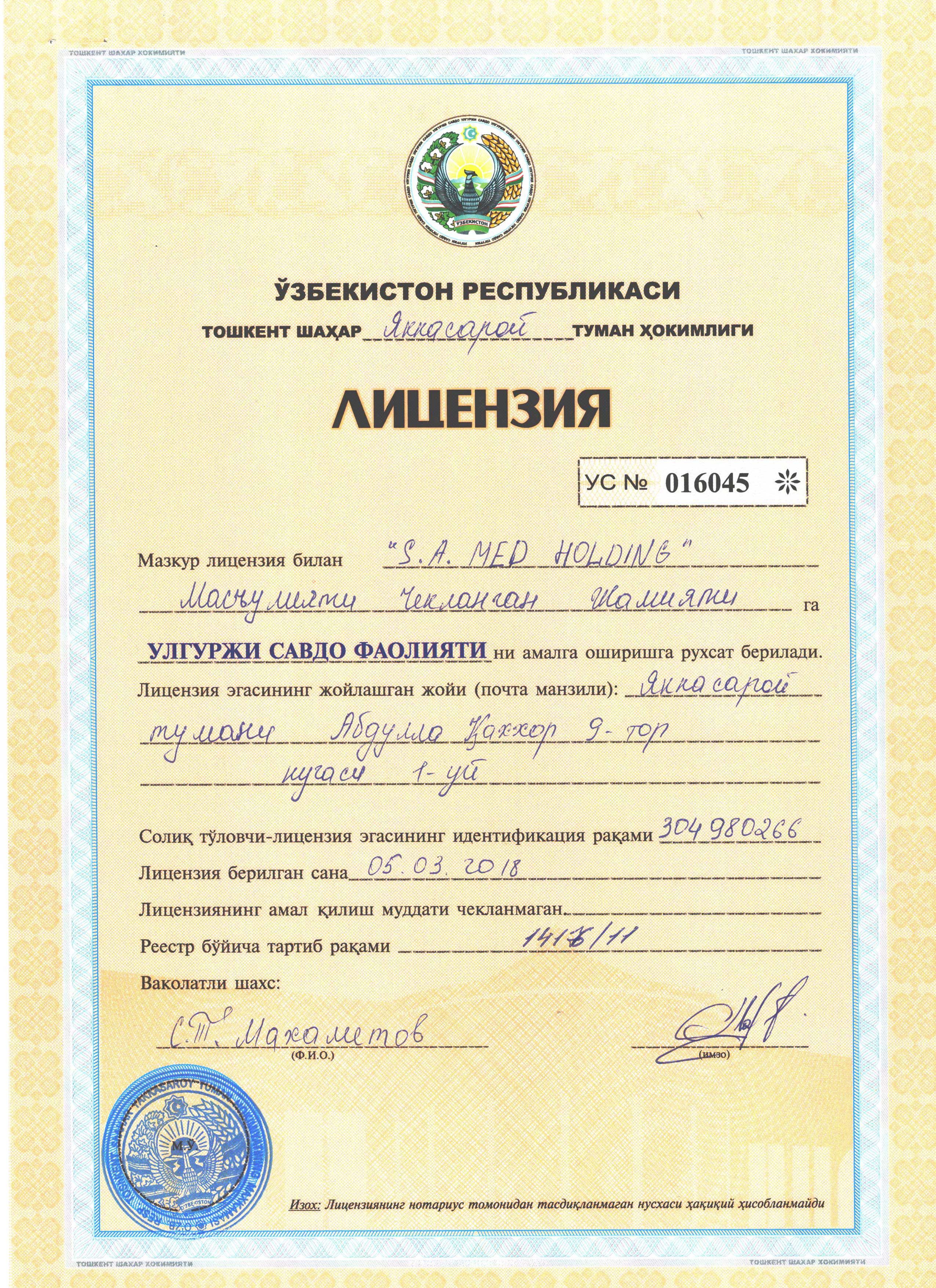 OOO «S.A. MED HOLDING» является одной из ведущих компаний по поставке и реализации медицинского оборудования, как по всей Республики Узбекистан, так и за ее пределами. Мы предоставляем товары от мировых лидеров, производящих высококачественную медицинскую технику и расходные материалы.