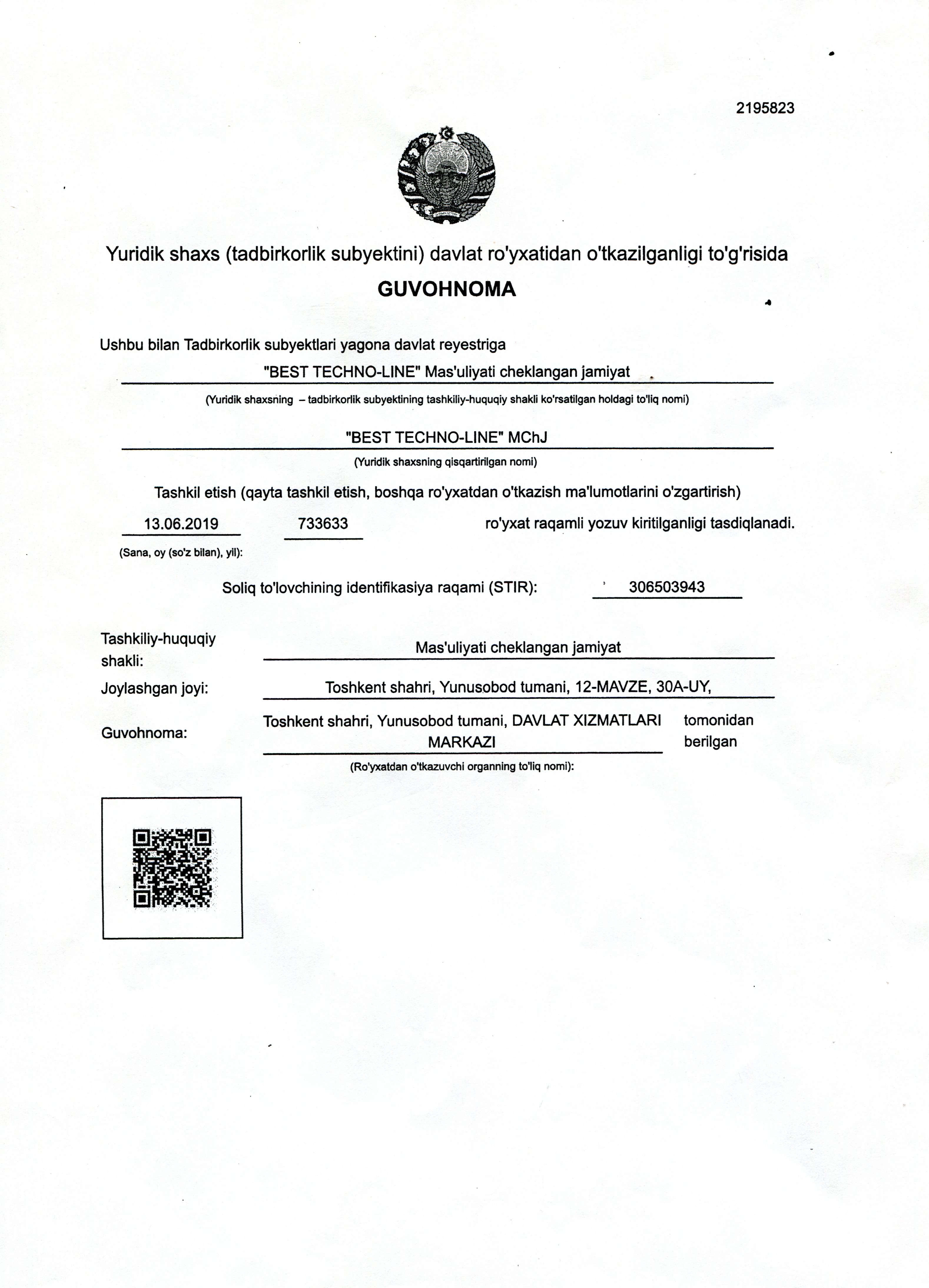 100114, Ташкентская область, Ташкент, юнусабадский район, кв-л Юнусабад-12, д.30А
