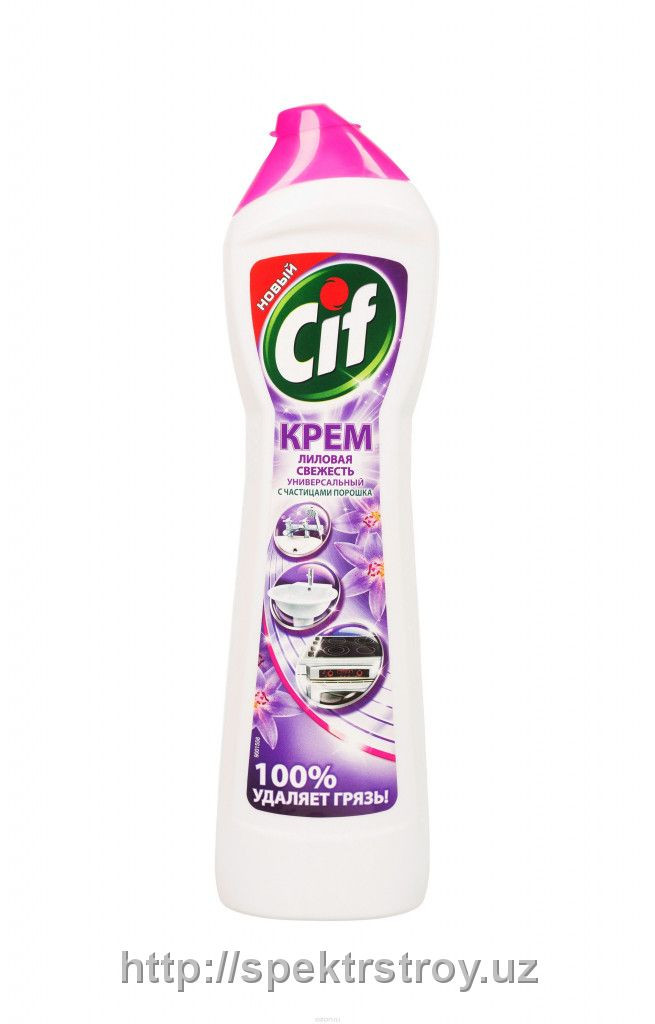 Cif Чистящий крем Лиловая свежесть, Нежный жасмин и Фиалка с микрокристаллами удаляет 100% грязи на кухне и в ванной, оставляя поверхности 100% сияющими и гладкими'. Легко смывается. Крем наполнит ваш дом приятным ароматом нежного жасмина и фиалки. Чистящий Крем проникает и полностью удаляет такие въевшиеся и застарелые загрязнения, как засохший жир, пригоревшая еда, мыльные разводы и известковый налет. Улучшенная текстура позволяет легче смывать средство, чтобы сразу насладиться сияющим результатом. По результатам тестов в Инновационном центре Unilever 100% удаляет ряд типичных загрязнений, оставляя поверхности сияющими и гладкими, какими они были до загрязнения.