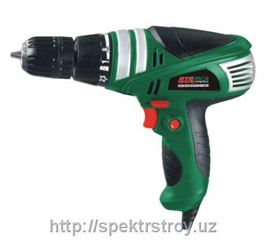 Дрель - электрический инструмент, предназначенный для придачи вращательного движения сверлу или другому режущему инструменту для сверления отверстий в различных материалах при проведении строительных, отделочных, столярных, слесарных и других работ. Оснащен реверсом и регулятором скорости. Реверс используется для выворачивания винтов и шурупов и для извлечения заклиненных насадок. Регулировка угловой скорости может быть реализована электронным или механическим способами