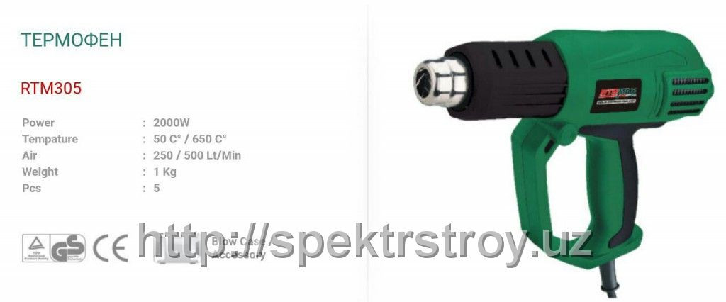 Термофен RTM 305, 2000W, 50-650град, 1кг