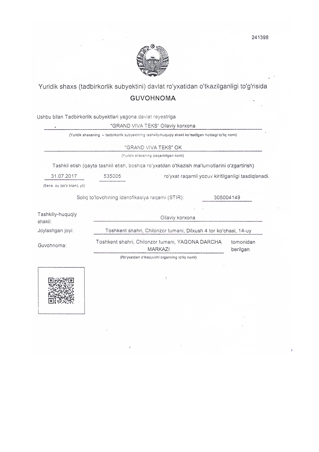 Внимание, остерегайтесь мошенников! Администрация сайта Tovar.uz не связывается с пользователями посредством мессенджеров и каким-либо другим способом! Официальные каналы связи указаны на сайте!