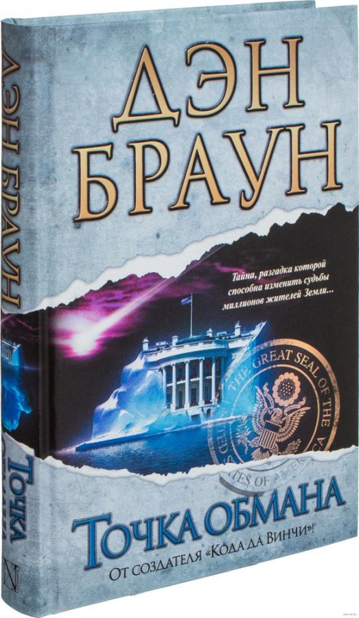 « То́чка обма́на » (англ. Deception Point) — остросюжетный роман американского писателя Дэна Брауна . Впервые опубликован в США в 2001 году. Российское издание книги выпущено издательством АСТ в 2005 году в переводе Т. Осиной. Рейчел Секстон, 34-летняя сотрудница Национального разведывательного управления США, неожиданно вызывается к своему начальнику, директору НРУ Уильяму Пикерингу. Рейчел — дочь сенатора Седжвика Секстона, политического оппонента действующего президента США Зака Харни. Тем неожиданне