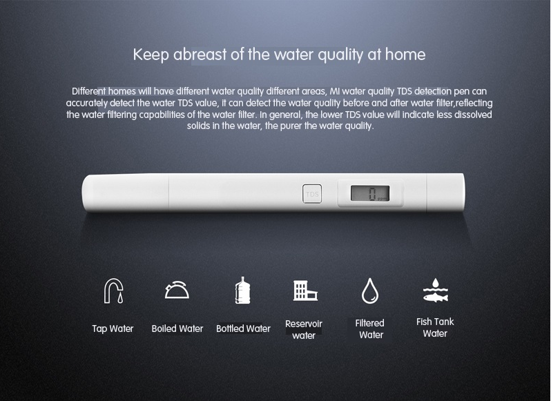 TDS тестер от Xiaomi может точно определить степень минерализации воды. Согласно стандартам всемирной организации здравоохранения (WHO), вода, пригодная для питья, не должна превышать показатель TDS 600 мг/л. При уровне минерализации в 1000 мг/л и выше происходит изменение вкусовых качеств воды.